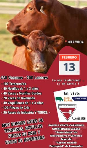 Necesitamos todas las categorías de ganados para el campo.